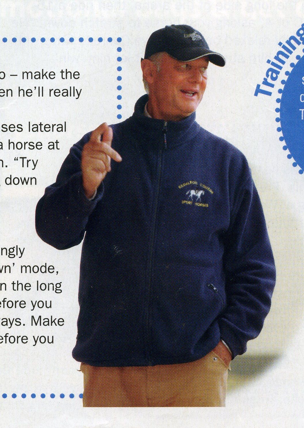 Training tip: "Try asking a strong horse to stretch down over poles in trot. This allows you to work long and low without him rushing."