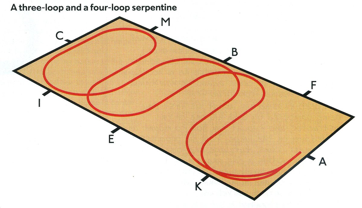 You can ride a serpentine with any number of loops, as you can see from our diagram of a three-loop and a four-loop serpentine.