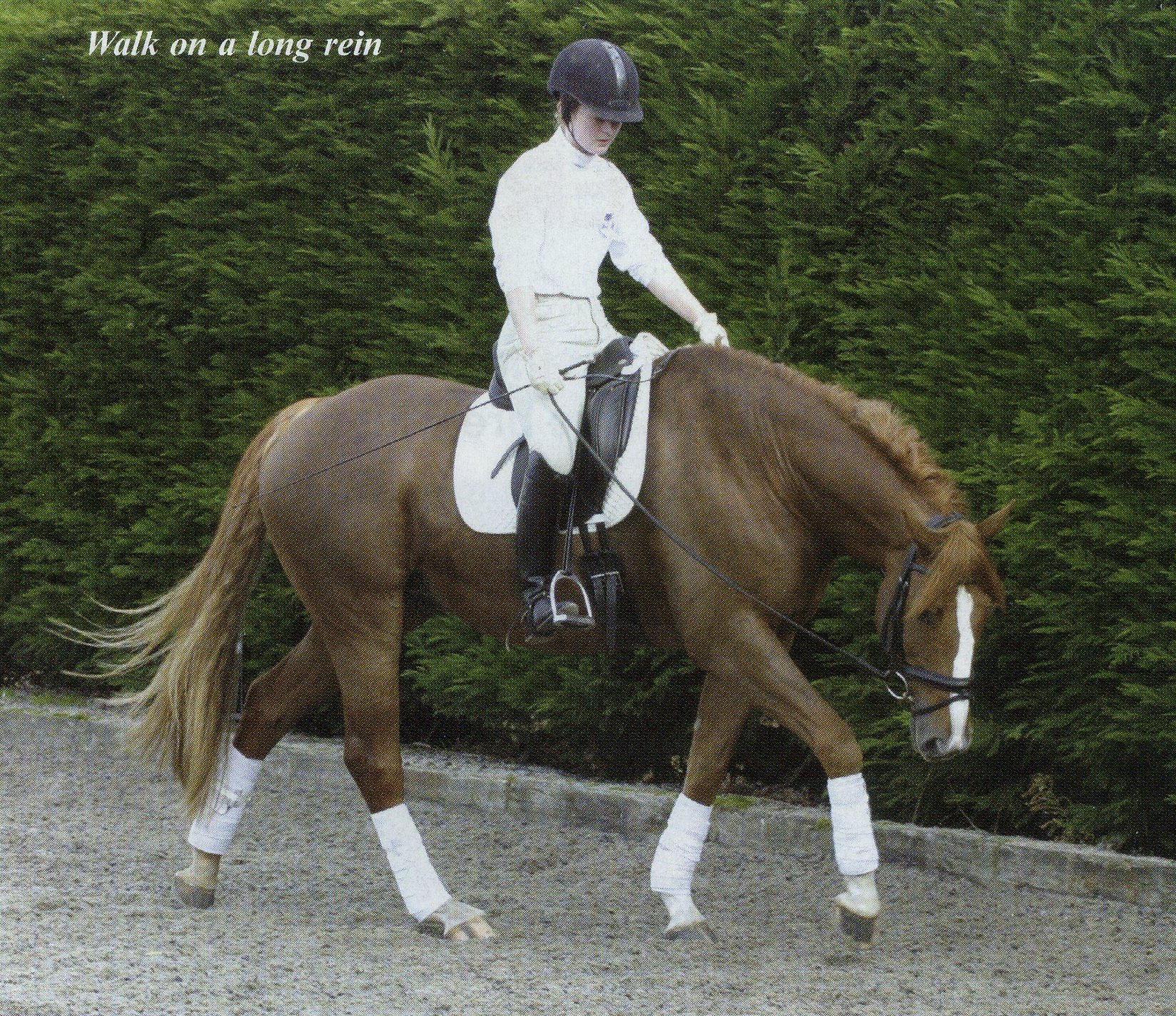 The downward transitions are difficult at first for everyone because as with the walk you have to have an energised supple balanced trot and feel you are in harmony with the horse. You must also ride the downward transition forwards. To come into the walk from the trot just let your weight sink down by letting the heels go down softly. This will put the correct amount of weight in the saddle. Again you must have the elastic allowing contact, which tells the horse that you want him to walk. A good exercise to do is on a 20 meter circle and as you approach the wall of the school then just think I am going to allow and ride forward into the walk. The wall helps the horse to understand that he must walk. Once in walk you must make sure that the walk is smooth and active right away.
