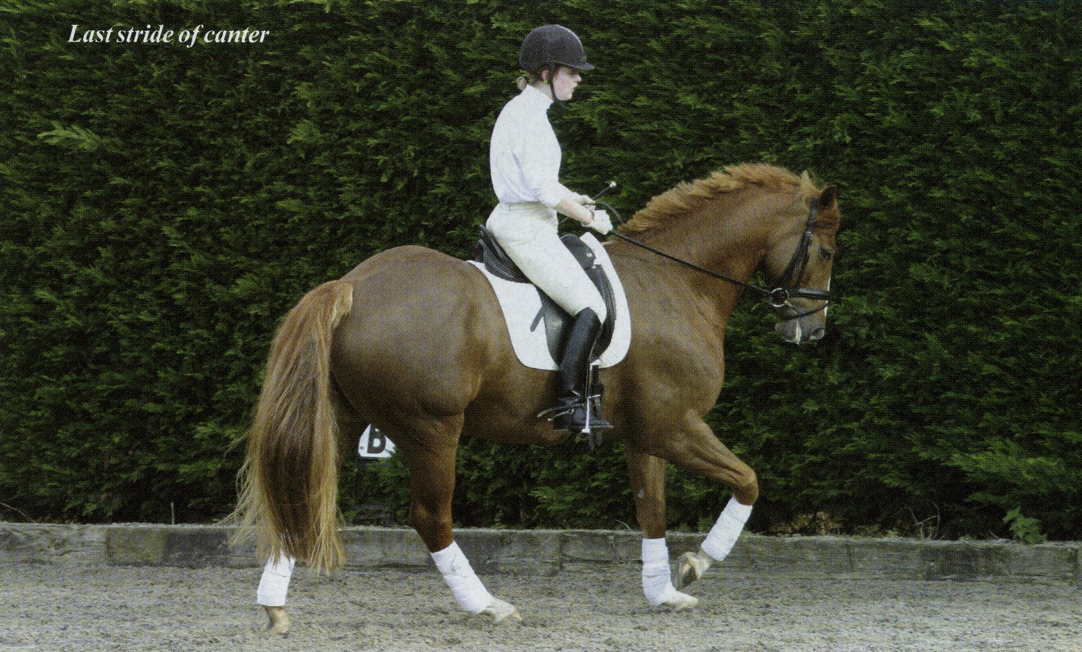 Again the trot to canter transition will also only be as good as the trot before it. The rider should ask for the canter with the inside leg on the girth and the outside leg just behind the girth.